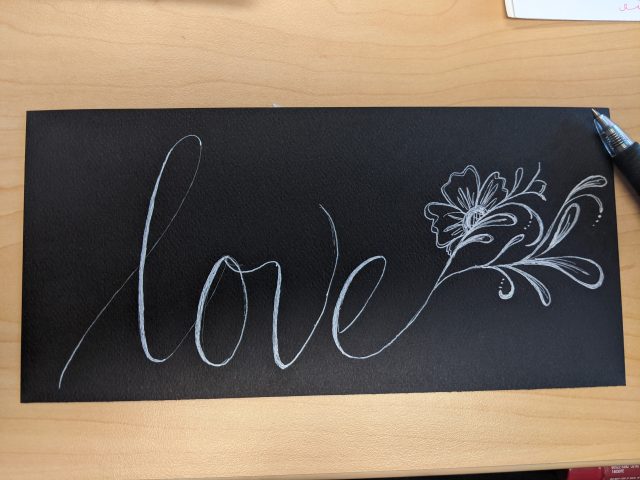 Anyone can do this, and that’s the beauty of it. Buy a pack of cards and envelopes from Joann Fabrics or Michaels with a coupon and a pack of 8 gel pens from Dollar Tree and you’re set. You can supplement with watercolor or colored gel pens or sequin stickers, but less is more, and extras aren’t essential. Turn on a classical music playlist and doodle for thirty minutes and the process will significantly improve your week. If it doesn’t help, talk to me!