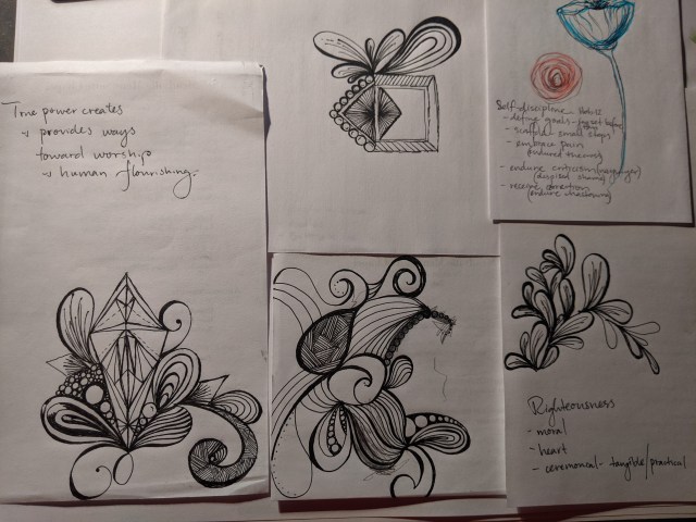 I doodle when I’m in an orientation meeting that I’ve heard before. I doodle when I’m trying to stay awake in church, which is rare. I doodle when I’m at an art party, and sometimes the doodles progress to color.