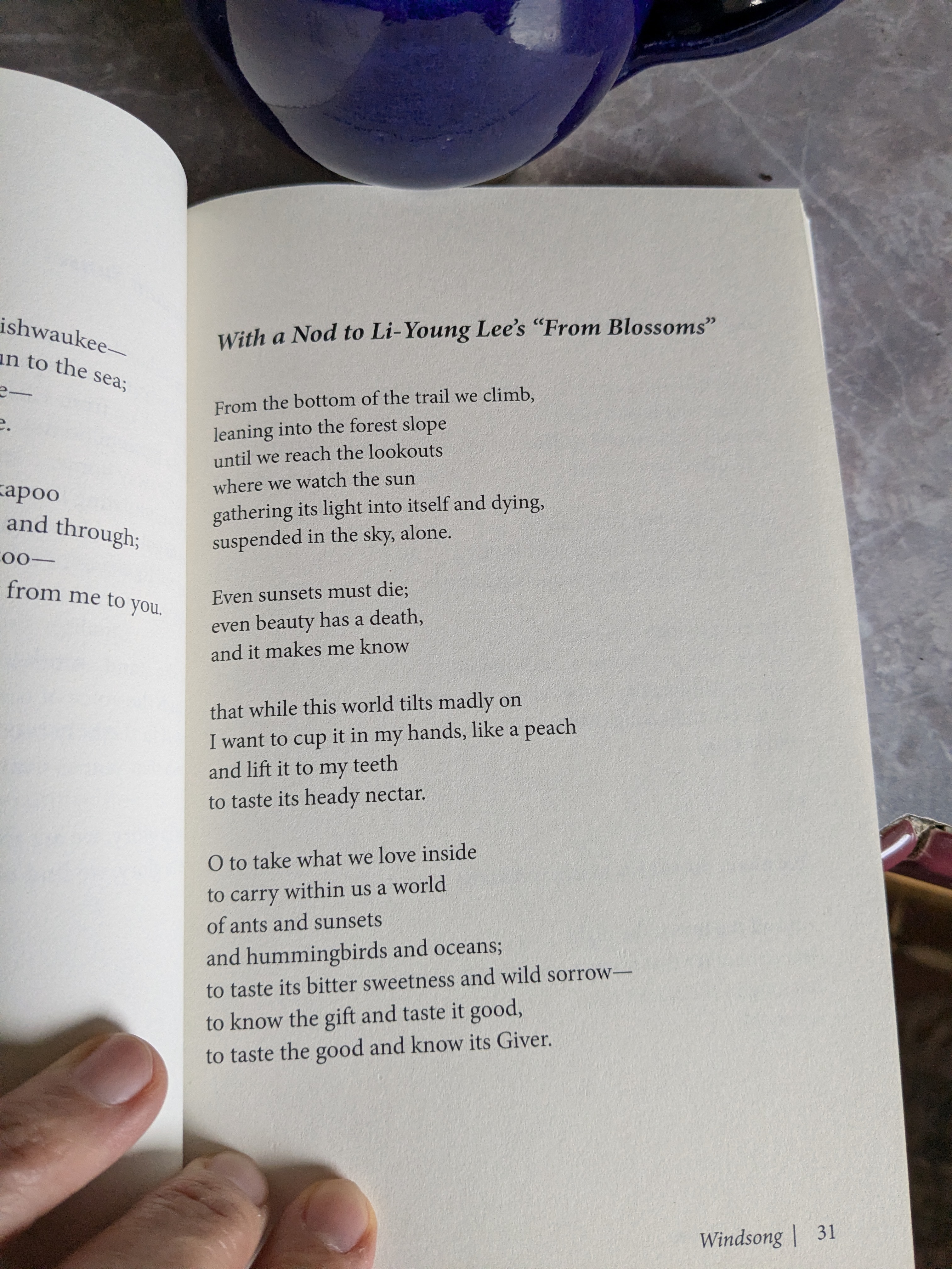 I also love how Lori’s poems give a nod to or enter conversation with other poems and their writers. Like this one:
