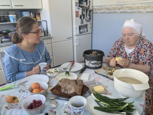 We stayed with her parents for the night, just outside the city. Ella’s their youngest daughter. She was gracious and happy, but distracted, and we prayed she could sleep well. Her parents had no English, but her dad would greet me with a hearty, sober “Boker tov!” that delighted me. I could understand most of their German: “The table is set for you. We welcome you because you’re God’s child.” Her mom cried to me, saying parents shouldn’t have to bury their children. When I stood in their kitchen and listened in on their Russian conversation, I felt like I’d stepped into a painting.